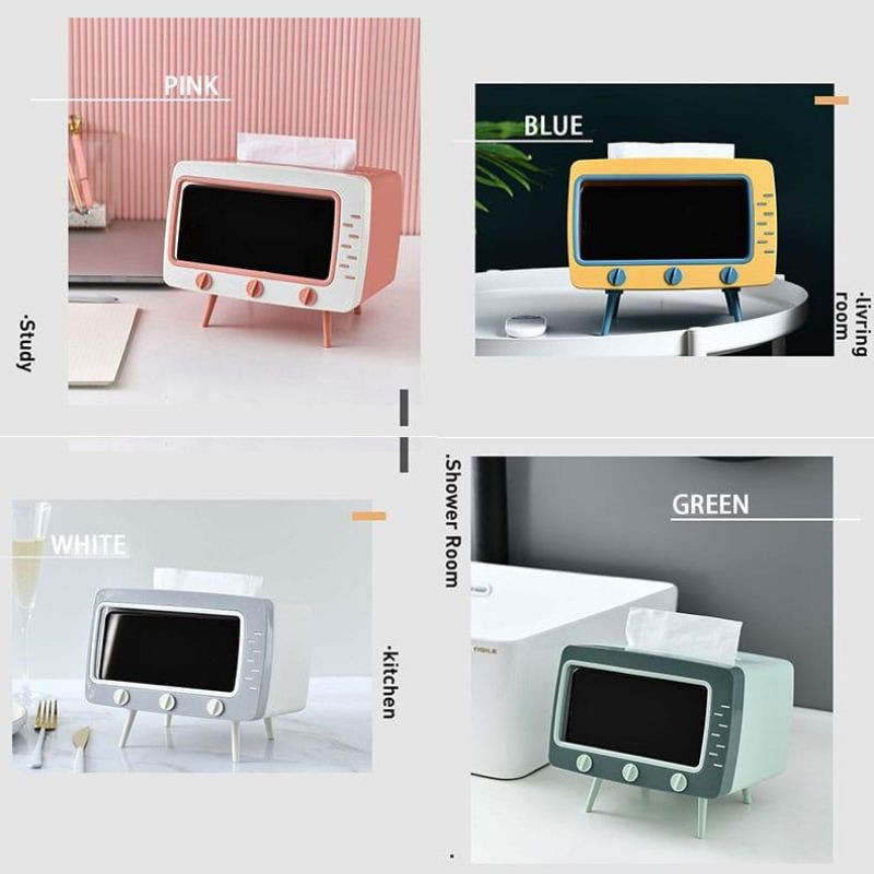 TISSUE BOX PONSEL HOLDER PRODUK INFORMASI : UKURAN PRODUK : 18.5*14.5*16cm UKURAN DUS : 72*43*72cm BERAT PRODUK : 288Gram MATERIAL : ABS+PP UKURAN HP : L158.2mm H78.3mm Thickness 1