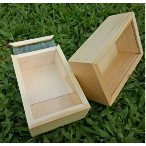 Wooden sliding acrylic boxUkuran: 20x30x6cm (bagian luar) 17x27x5cm (bagian dalam) Bahan : Kayu Jati be