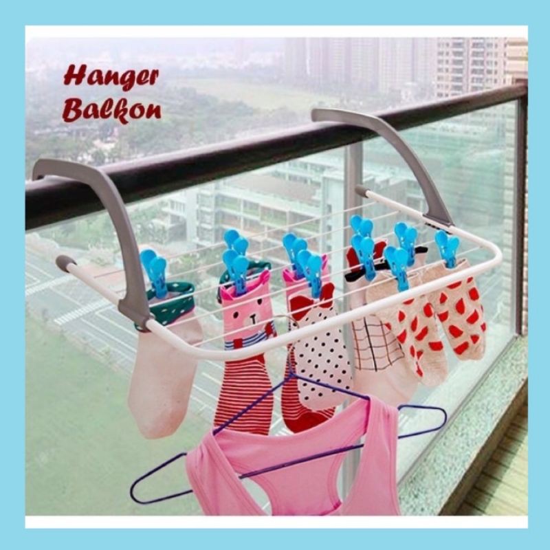 Susah untuk jemur pakaian akibat rumah sempit atau tinggal di apartemen dengan balkon sempit sehingga kesulitan untuk jemur pakaian.Gak perlu bingung, dengan hanger balkon jemur pakaian bisa dimana aja. Hanger balkon adalah hanger yang bisa digantung di balkon. Pasangnya cukup dengan digantung, tanpa baut, tanpa bor. Cocok bagi anda yang tinggal di apartemen dengan balkon sempit. Bisa untuk jemuran kaos kaki, pakaian, underwear, pakaian anak. Hanger juga bisa digantung di luar jendela rumah, cocok bagi anda yang tinggal di rumah dengan tempat jemuran terbatas. Hanger balkon terbuat dari bahan besi dengan lapisan anti karat, Untuk gagang gantungan dari plastik tebal khusus untuk gantungan, kuat menahan hingga berat 5kg Gagang hanger bisa dilipat jadi rata, memudahkan untuk menyimpan saat sedang tidak dipa