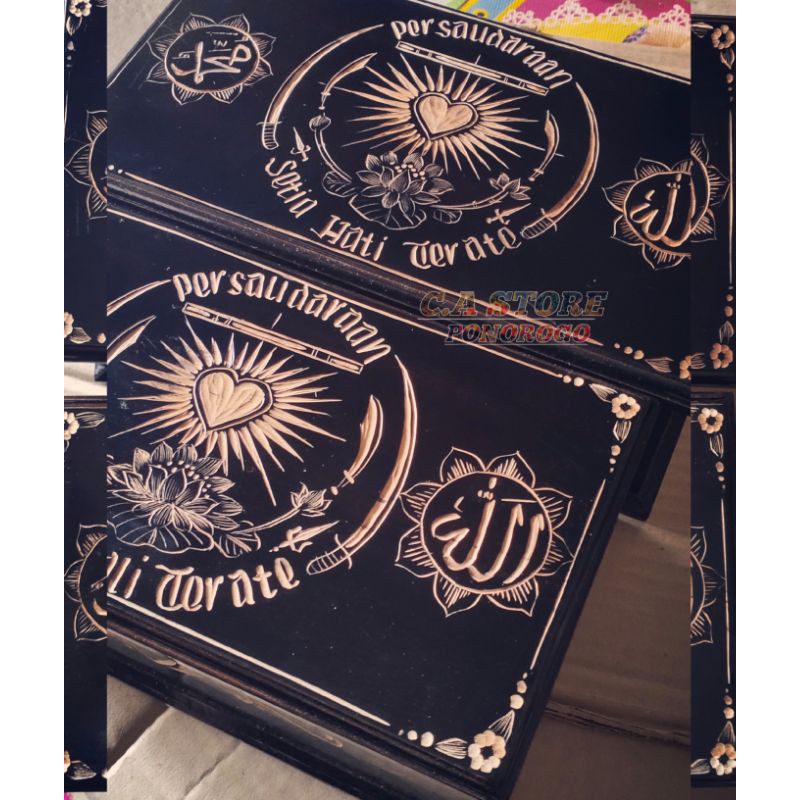 Kotak mori ukir PSHT Bahan kayu jatiUkuran 28cm x 18cmProses pembuatan 3-4