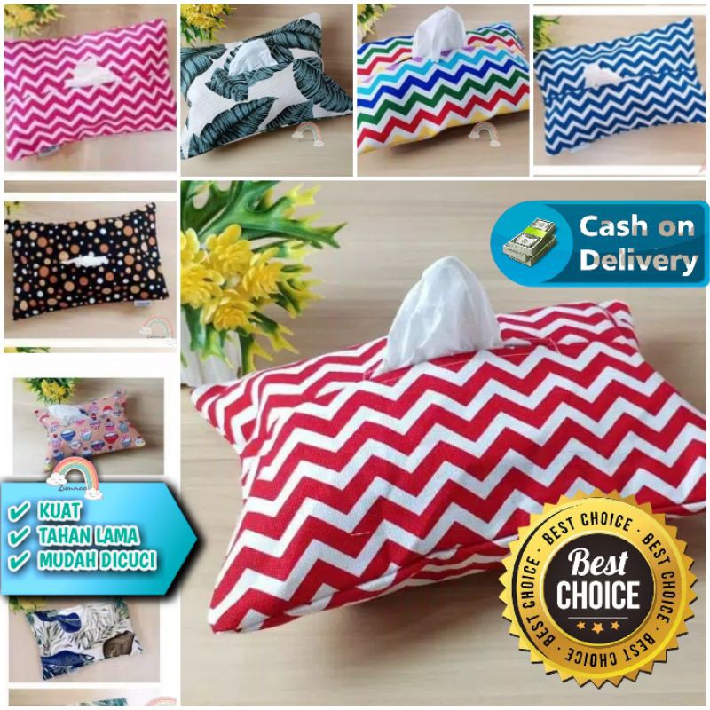 BismillahirrahmanirrahiimSelamat datang dilapak kami, Pelangi Zumnaa -Menyediakan Berbagai Homedecor Untuk Mempercantik Dekorasi Rumah Anda.Temukan Barang sesuai kebutuhan kamu dibagian Daftar Produk kami. Happy Shopping!Spesifikasi:SARUNG TEMPAT TISU KAIN KANVAS MOTIF COVER TEMPAT TISSUE MOBIL KOTAK TISUE DAPUR MURAHTempat Tisu / Cover Tisu ini bahan kanvas tebal ya, cocok untuk digunakan di manapun seperti meja tamu, ruang makan, didalam mobil maupun di meja cafe. Dengan modelnya yang simpel abis, cocok dibawa kemanapun.- Terbuat dari kain kanvas linen yang tebal dan halus.- Ukuran: 20 X 30 cm- Muat tisu 260 sheet.- Terdapat velcro (perekat) di bagian bawah untuk memasukkan tisu.- Cocok juga untuk dibuat souvenirKeunggulan & Perawatan:1Kain Kanvas Kuat, Tahan Lama, & Sangat Mudah Dicuci2Hindari pemakaian Detergen Yang Berlebihan, Gunakan Shampoo Bayi Untuk Menghilangkan Noda Membandel3Jangan Menyikat & Menjemur Terlalu Lama Untuk Menjaga Warna Tidak Cepat Pudar4Gunakan Kamper Pada Penyimpanan Untuk Menghindari Bau Apek Atau Tak SedapMotif / Variasi: Chevron Blue, Chevron Pink, Chevron Red, Tropical, Chevron Rainbow, Choco Ball, CupcakeINFO PENGIRIMAN Berat dan/atau harga ongkos kirim barang yang tertera pada sistem sudah termasuk BUBLE WRAP Untuk mempermudah komunikasi1Harap membaca keseluruhan deskripsi, agar tidak salah order.2Mohon sebutkan merek & seri barang yang mau ditanyakan3Barang Selalu Ready Stock Sesuai Variasi Sehingga Dapat Langsung DiCheckoutSKB**1Wajib untuk unboxing di video .. Komplain tanpa video unboxing tidak kita terima..2Packing kayu sesuai dengan permintaan dan dikenakan penambahan biaya ongkos