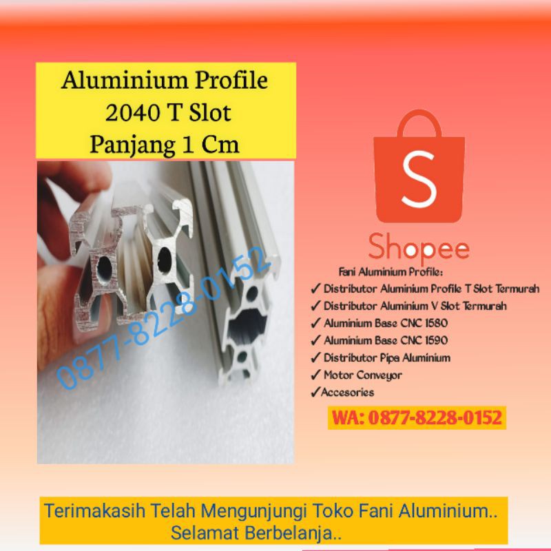 Name: Aluminium Profile Series 2040 T-slot Harga Per 1 Cm = 10 Mm Termurah