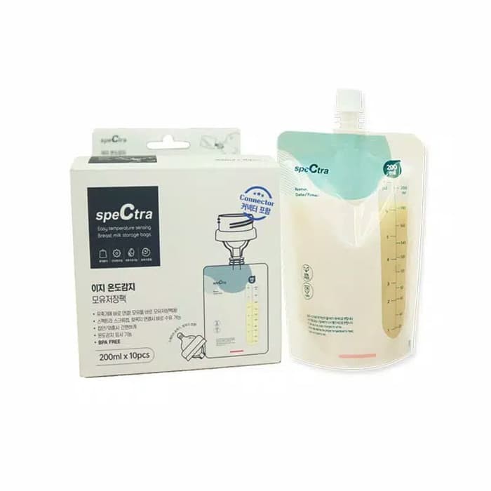 SPECTRAType : Premium Milk Bag Storage With ConnectorPremium Milk Bag Storage with Connector adalah kantong ASI yang dapat langsung disambungkan ke corong ataupun dot (nipple) dengan menggunakan connector. Storage memiliki kapasitas hingga 200ml. Storage memiliki tutup yang dapat dikencangkan sehingga mudah untuk penyimpanan.Fitur :-BPA free-Terdapat indikator suhu-Bisa menuliskan nama dan tanggal ASIP pada milkbagIsi paket :10 kantong 200ml1 buah conn