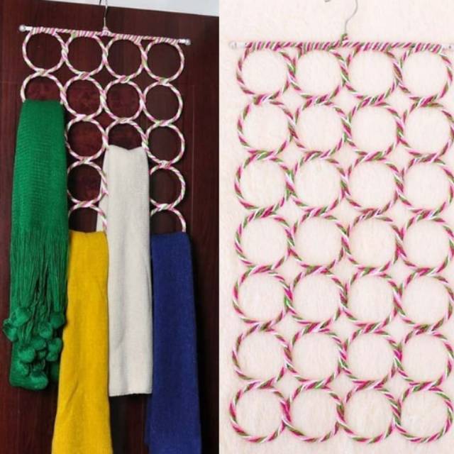 Stock selalu readyHanger Bulat / Ring / Hijab / Jilbab / Kerudung 28 lubang adalah hanger unik berbentuk bulatan untuk menggantung ikat pinggang, syal, jilbab. Anda dapat menggantung koleksi syal / ikat pinggang / jilbab di Hanger ini dengan mudah dan rapi.Hanger ini mempunyai bulatan 7 susun ke bawah dengan tiap susun terdapat 4 bulatan yang berdiamer 9 cm. Satu bulatan dapat di gantung beberapa syal / jilbab / ikat pinggang koleksi kersayangan anda sehingga akan sangat efisien dan menghemat tempatSetelah semua koleksi kesayangan anda tersusun pada hanger ini, Hanger ini dapat digantungkan pada lemari / tembok pada kamar sehingga bisa menghemat tempat dan tampak rapi.Hanger ini dibuat dari bahan besi sehingga sangat kuat dan tidak patah walaupun terjatuh. Hanger ini juga dibalut dengan tali kain kertas warna-warni sehingga akan membuat koleksi anda menjadi lebih menawan saat di lihat.Hanger ini di jual per psc. Semakin banyak jumlah yang di pesan maka semakin murah harganya1 psc = 1