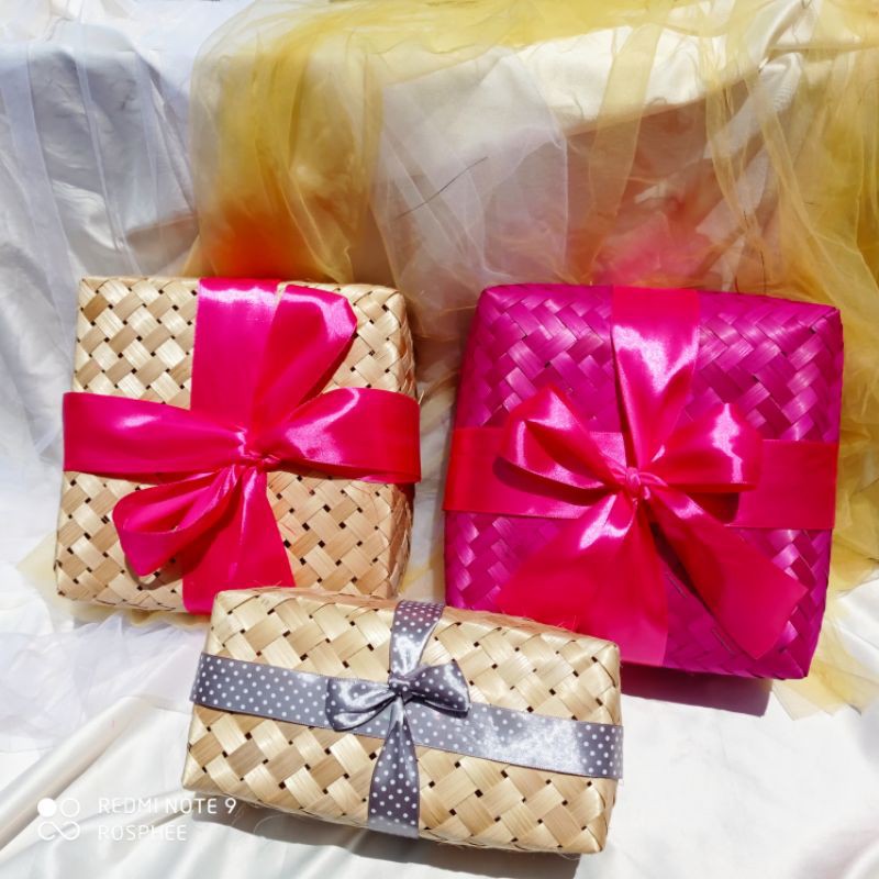 Harga tercantum utk sepasang (alas+tutup) sesuai variasiBesek anyaman unik sangat cantik utk packing anda akan tampak beda dari biasanya..sangat membantu memajukan kerajinan anyaman besek ❤ harap beri toleransi ukuran yaa kk... krn ini kerajinan tangan 1-2cmREADY YAA BUKAN POReal utk pita ukuran warna dan motif sesuai stock yg ready CHAT JIKA REQUEST FREE BLANK CARD.. JIKA TDK CHAT / TDK ADA DI NOTE KAMI TIDAK SERTAKAN YAA KK Jika ingin order utk kado bersamaan isinya bisa langsung isian barangnya order di toko kami yaa kk.. banyak macam.. bisa langsung kami packing kan dan free blank c