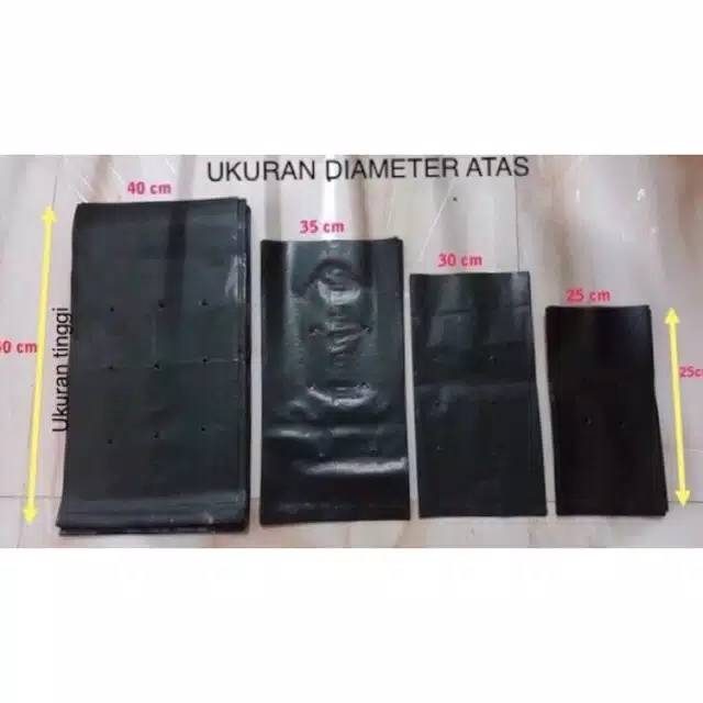 HARAP TANYA STOK DAN BACA LEBIH DULU!Plastik polibag sebagai wadah utk menanam pohon pengganti pot. Ilustrasi uk diatas itu menggambarkan DIAMETER x TINGGI ya bukan lebar x tinggi.HARGA untuk per kg ya NO campur, 1kg UNTUK 1 UKURANjika minta campur kita akan kirim salah satu dari ukuran yg di pesan Tersedia uk 15x1520x2025x2530x3035x35 40x40 45x4550x50 isi per kg Polybag kurang lebih ya kakak 50x50 : 2045x45 : 2540x40 : 3535x35 : 5030x30 : 6025x25 : 15020x20 : 25015x15