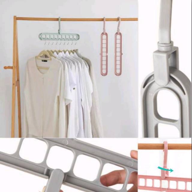 Dengan Magic Hanger Anda bisa hemat tempat untuk dilemari atau pun di jemuran, setelah habis dipakai bisa dlipat dan disimpan dengan ukuran mini...Simsalabim! Pakai Magic Hangers, lemari baju kamu langsung terlihat lapang! Dan kamu bisa mengorganisir baju-baju kamu lebih baik.Gimana caranya?Gunakan saja beberapa Magic Hangers! Tiap hangers kamu organise hanya untuk 1 tipe baju, misal hanya untuk kemeja. Tiap hanger yang bisa untuk 12 baju loh. Nah, di hanger lain kamu organise hanya untuk celana saja misalnya. Mudah kan? Lemari tidak lagi kepenuhan, dan kamu mudah mencari baju yang ingin kamu pakai!Ideal banget untuk yang punya lemari kecil. Juga bisa untuk menggantung tas, ikat pinggang dan lainnya.Material : PlastikUkuran : 33.5 x