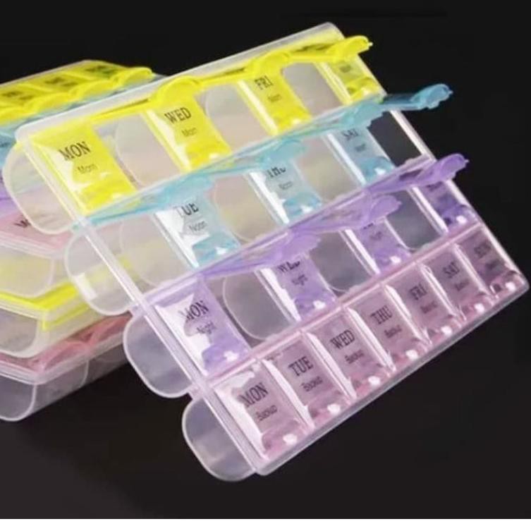 Barang toko Kami READY STOCK, bisa langsung order.. atau silahkan chat Kami untuk memastikan warna / ukuran / variasi yang di inginkan."Kotak Obat 28 Sekat warnaBahan : plastik Warna ABSType : 28 skat warna Diameter : 2.5 cmUkuran produk : 12 x 21 x 2 cm ( P x L x T )Ukuran Karton : 14 x 23 x 5 cm ( P x L x T )Berat : 700 grIsi Kemasan :1pcs - Kotak Obat 28 Sekat warnaCocok untuk dipergunakan saat meminum obat secara tepat waktu dan teratur, menyimpan perhiasan, menyimpan barang kecil lainnya dll.kotak warna kuning untuk meminum obat di saat pagi hari, warna biru pada waktu siang hari, warna ungu untuk sore hari dan warna merah muda untuk meminum obat di saat malam hari.Kotak obat ini memudahkan anda saat meminum obat, karena dalam satu kotak sudah mengatur jadwal waktu anda selama kurang lebih 1 minggu untuk peminuman obat 4 x dalam sehari.Tunggu apa lagi?? Silahkan langsung di Checkout, barang yang masih terpajang berarti IN STOCK, tapi bisa habis sewaktu".. Jika orderan kosong akan Kita konfirmasi melalui chat .. Happy shop