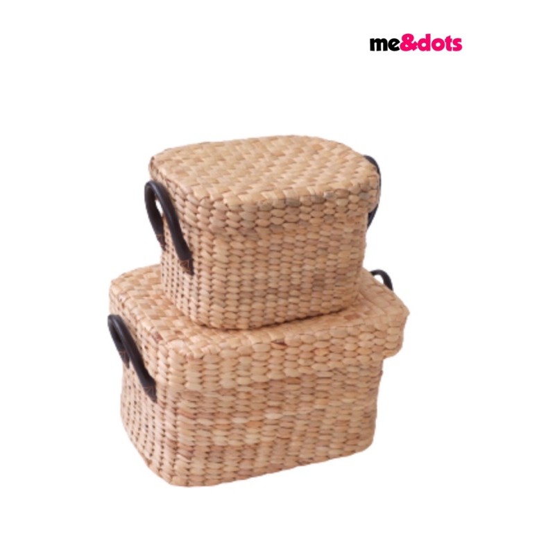 Rincian :1. Bahan enceng gondok dengan handle kulit imitasi2. Tersedia 2 ukuran dengan rincian: Medium = 32x25x21cm (pxlxt) Large = 38x30x36cm (pxlxt)3. Pembelian bisa satuan, Medium atau Large.4. Foto dengan botol air mineral dan buku adalah hanya sebagai sample untuk patokan ukuran.5. Termasuk tutup seperti foto6. Bahan enceng cukup elastis, apabila penyok dalam pengiriman, bisa di rapikan dengan memasukan barang yang berat ke dalam keranjang tersebut.6. Cocok untuk tempat penyimpanan multif