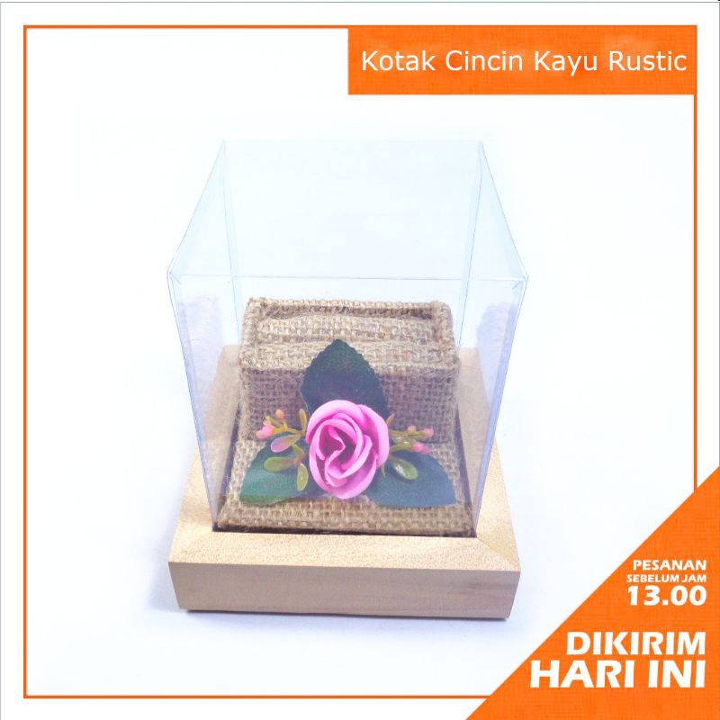 Name: Tempat Cincin Kayu Rustic Bunga Tutup Mika - Kcr