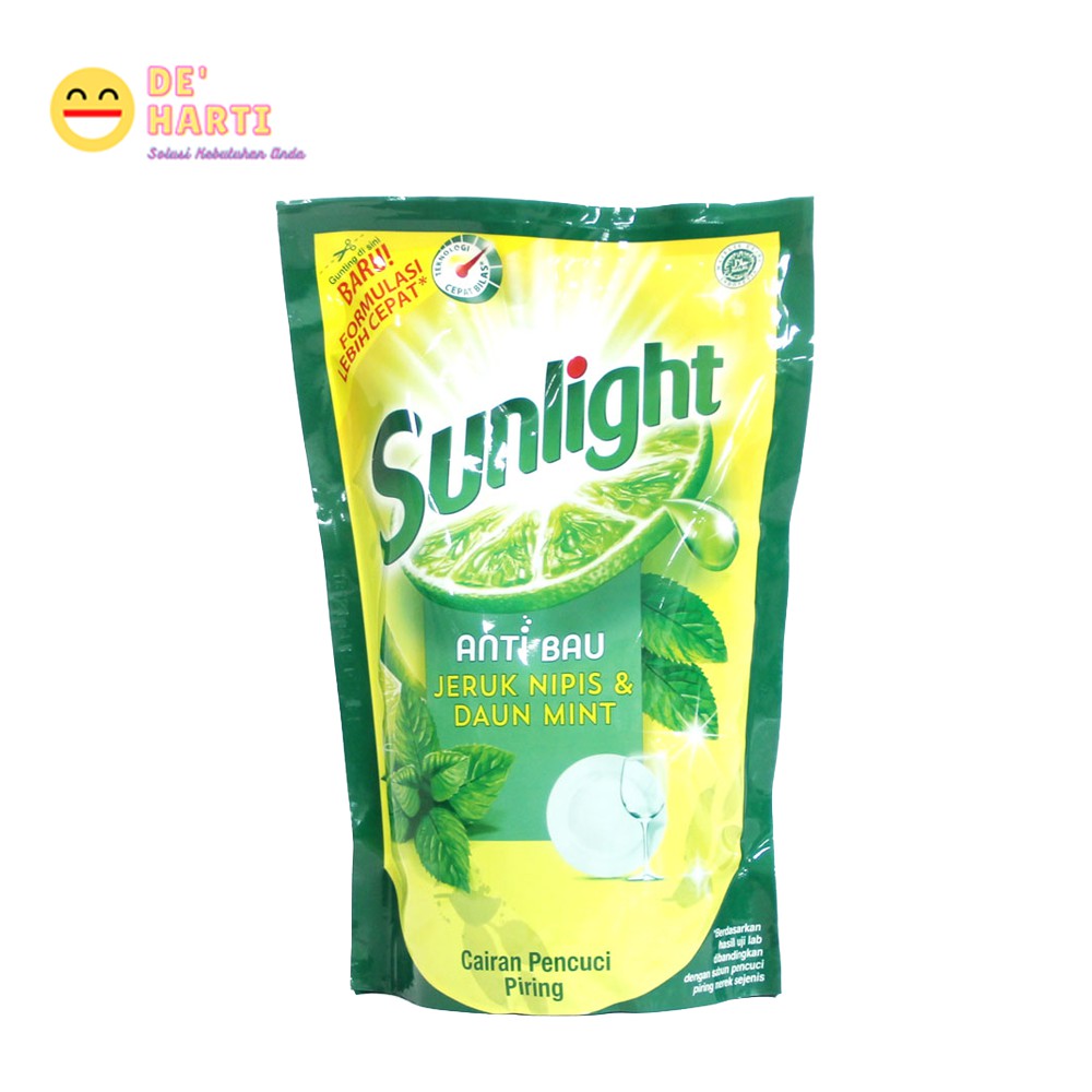 Sunlight Jeruk Nipis & daun Mint 755ml (Anti Bau)Sunlight Anti Bau diformulasikan dengan jeruk nipis asli dan ekstrak mint dengan aksi-anti bau membersihkan lemak pada peralatan makan dan masak sekaligus menghilangkan lima jenis bau tak sedap membandel, seperti ikan, telur, bawang, gulai dan gorengan tanpa perlu mencuci kembali. Dengan teknologi baru Cepat Bilas*, Sunlight Anti Bau lebih efektif dan 10x lebih cepat bersihkan lemak.Sunlight Anti Bau diformulasikan dengan jeruk nipis asli dan ekstrak mint dengan aksi-anti bau membersihkan lemak pada peralatan makan dan masak sekaligus menghilangkan lima jenis bau tak sedap membandel, seperti ikan, telur, bawang, gulai dan gorengan tanpa perlu mencuci kembali. Dengan teknologi baru Cepat Bilas*, Sunlight Anti Bau lebih efektif dan 10x lebih cepat bersihkan lemak.Bahan Aktif: Total Surfaktan